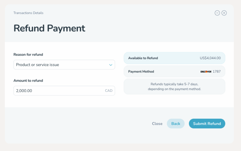 Refunds are issued directly inside Sprout—no logging into a separate app. Simply select the transaction, choose refund and fill in the details, and FlowPay handles the rest.